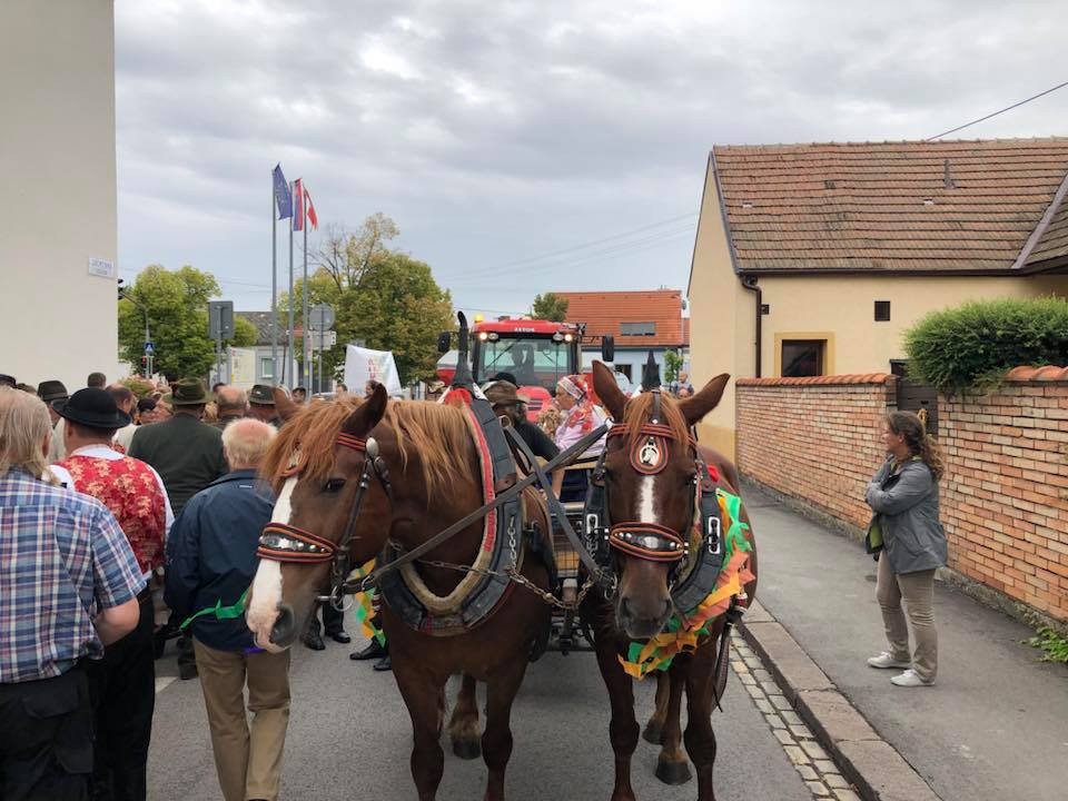 Aj koníky kráčajúce v dožinkovom sprievode boli slávnostne vyzdobené...