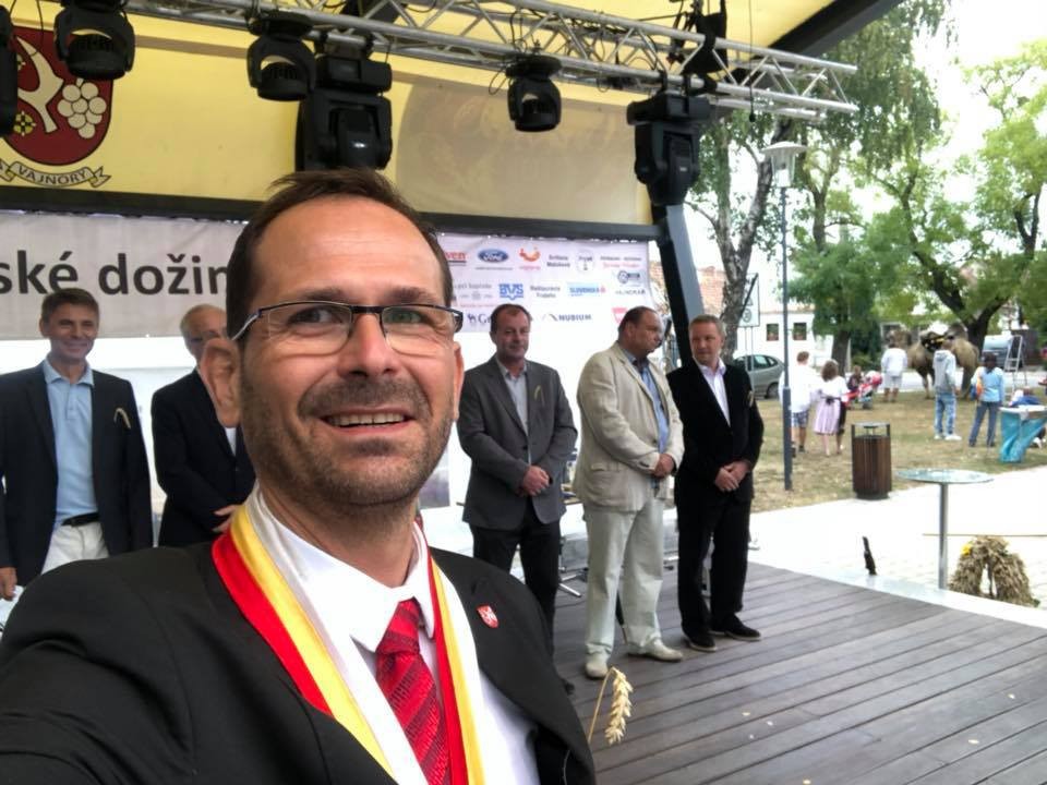 Starosta Vajnor Ján Mrva si urobil na pódiu selfie, na ktorej zachytil aj usmiateho primátora Bratislavy Iva Nesrovnala.