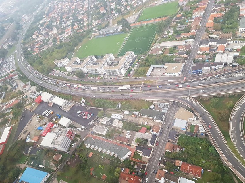 Zábery v našej fotogalérii vznikli totiž včera na palube policajného vrtuľníka. Policajti sa vzniesli nad Bratislavu, aby monitorovali dopravnú situáciu. preto ich logicky nezaujímalo historické centrum, ale lokality s veľkou hustotou áut. Vzhliadnuť tak môžete aj okrajové lokality nášho mesta, no uvidíte i to, ako ho mení stavebný ruch.