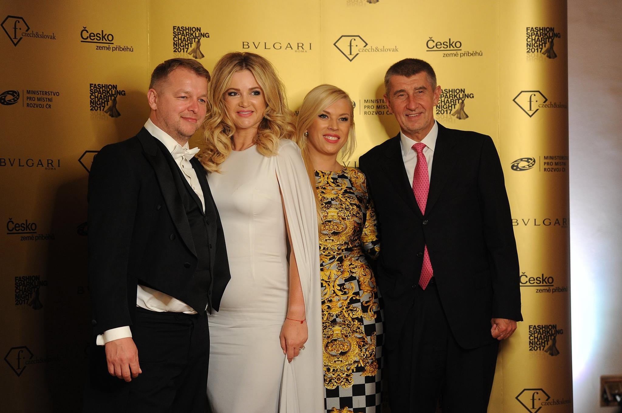 Podnikateľ Karol Ruman, Monika Babišová, Gabriela Drobová a český premiér Andrej Babiš sa nedávno stretli na spoločenskej akcii...