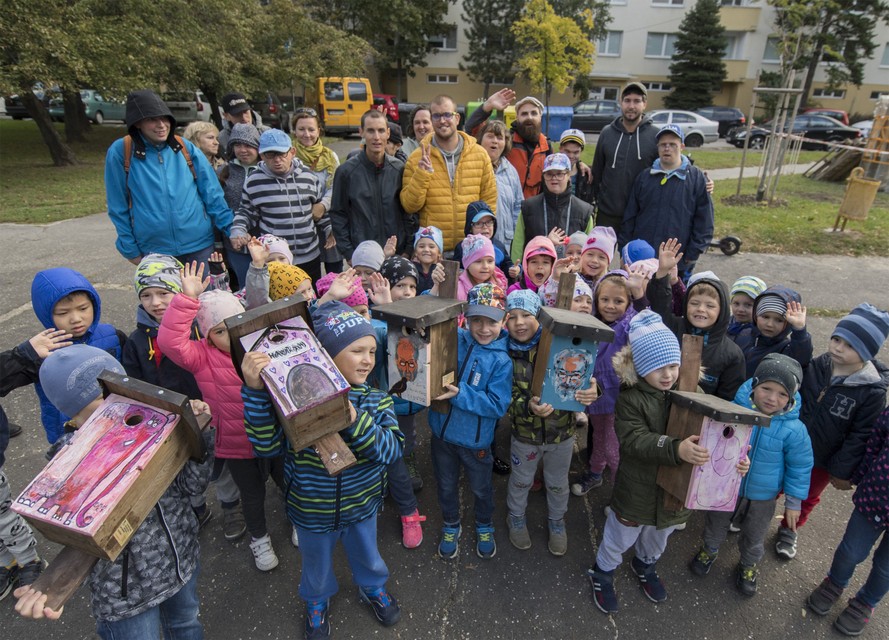 "V nich zahniezdia sýkorky belasé, vrabce, alebo iné malé vtáčiky," informoval liečebný pedagóg z DSS Erik Forgáč a všeličo prezradil o ornitológii aj o Dežovi, ktorého portrét je na dvoch búdkach.