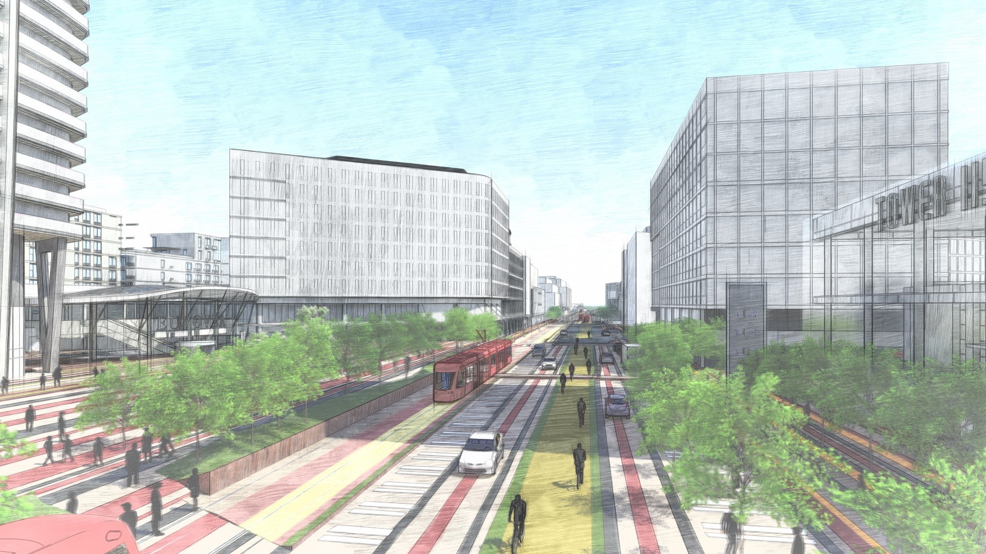 - Zmierniť cestnú prevádzku a premeniť oblasť na priateľskú k chodcom, s ohľadom na bezpečnosť všetkých členov dopravy a potreby cestnej prevádzky. Prevádzka zásobovacích áut a návštevníkov sa bude realizovať od konca bulváru prostredníctvom podzemných komunikácií, ktoré autá navedú priamo k parkoviskám. To zmierni dopad cestnej prevádzky na pohyb po bulvári.