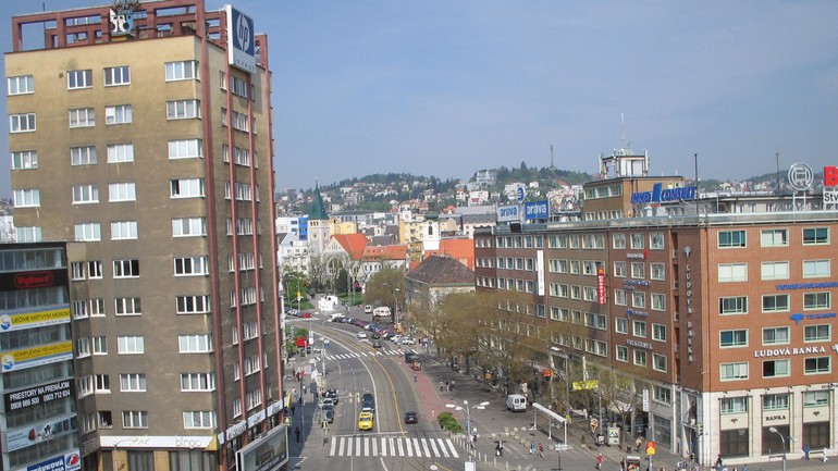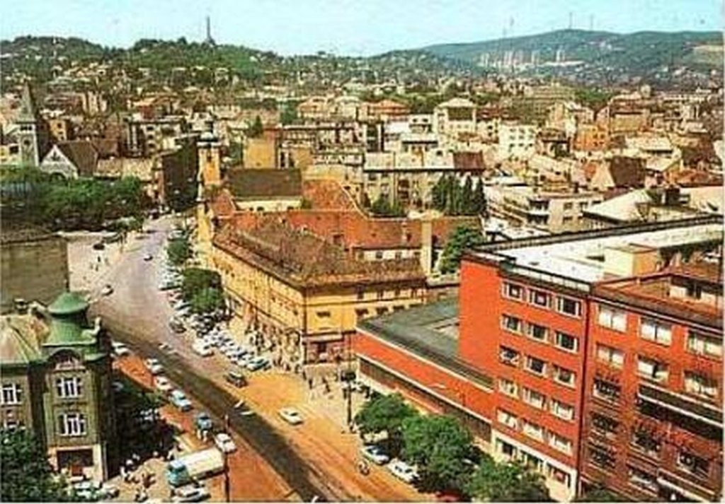 Výhľad z Manderláka na Námestie republiky - dnes Námestie SNP a panorámu Starého Mesta...