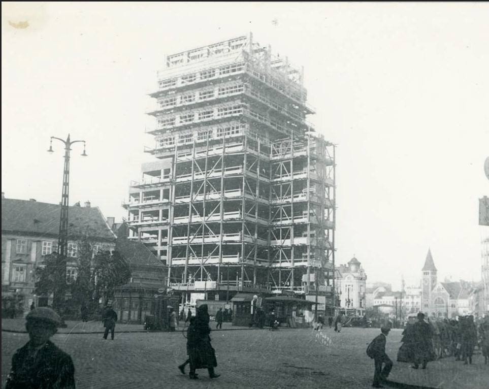 Samotná výstavba výškovej budovy netrvala vôbec dlho. Dokončená bola v roku 1936 za priam neuveriteľných deväť mesiacov. Najväčšou atrakciou stavby bol 70-metrov vysoký podporný stožiar. Hovorí sa, že niektoré žienky, ktoré predávali na trhu, sa báli, že keď silnejšie zafúka vietor, tak tá železná konštrukcia na nich spadne.
