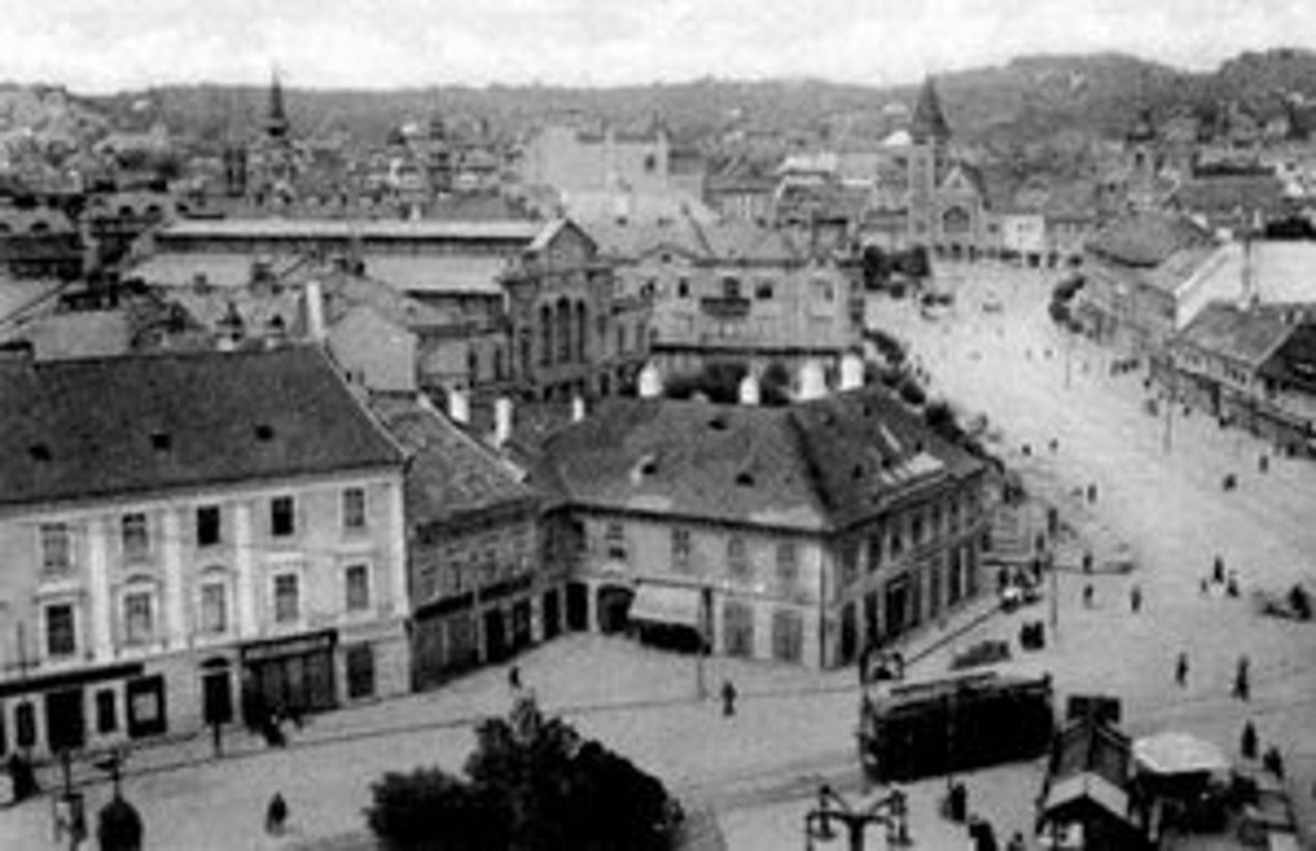 Na tejto snímke vidno domy na Kamennom námestí, kde sa dnes nachádza známy obchodný dom...