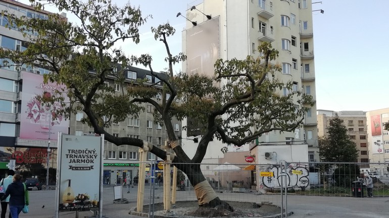 Ako dodala, aktuálne na Kamennom námestí zväčšujú plochy zelene, čo vysvetľuje pohyb robotníkov so zbíjačkami. Asi najväčšiu pozornosť včak zrejme vzbudzuje mohutný strom, ktorý je podopretý, jeho kmeň obalený a asfalt v jeho okolí bol už v pondelok rozrušený. Aktuálne strom už získal okolo seba nový širší priestor. "Robili sme dôležité kroky k záchrane a podpore veľkého solitérneho stromu - paulownia, ktorý obohacuje námestie už mnoho rokov. Drevina bola podopretá pre zlepšenie jej stability, keďže strom má zjavne zlé ťažisko z dôvodu nevyhovujúcich podmienok z minulosti. Paulownia bude mať okolo seba zväčšený kruh pre koreňový systém a zavedený podporný závlahový systém," vysvetlila Onufer.
