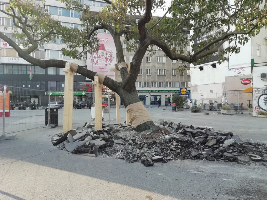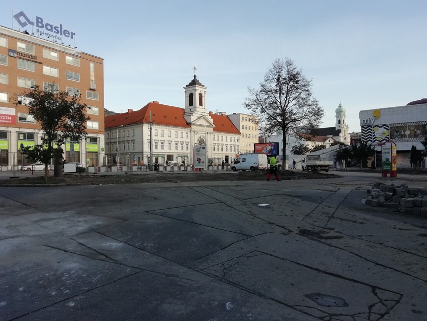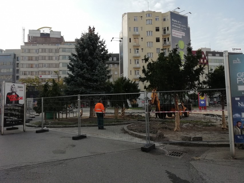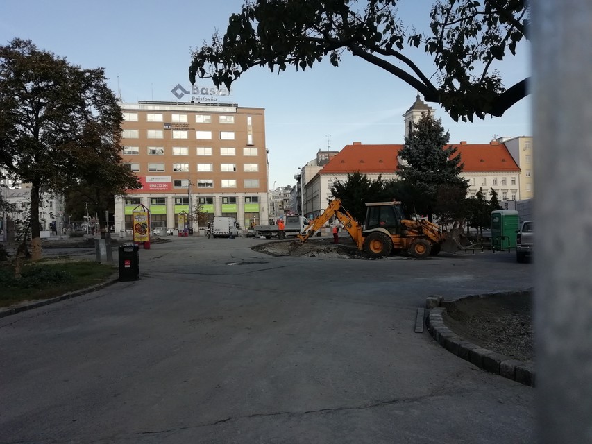 "Od 28.9. prebiehajú v rámci revitalizície námestia búracie práce, uskutočňuje sa zadláždenie spevnených plôch a výsadbových štvorcov, osádzajú sa obrubníky. Okrem toho prebiehajú čistiace práce, osádzame lavičky, revitalizujeme zelené plochy, budujeme závlahový systém a podobne," vysvetlila nám pracovný ruch hovorkyňa magistrátu Zuzana Onufer.