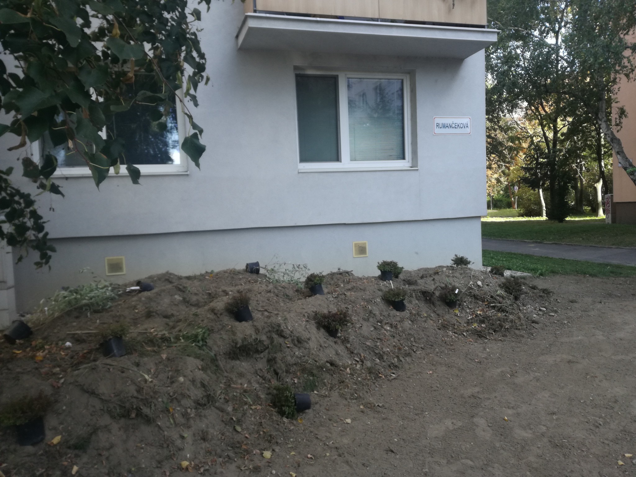 V týchto dňoch vlastníci bytov a nebytových priestorov Rumančeková 22-30, MAGNA SK, vďaka grantu z Mestskej časti Bratislava-Ružinov vysádzajú a revitalizujú zeleň pred svojim bytovým domom. Ide o jeden zo 41 úspešných projektov, ktoré tento rok celkovou sumou takmer 145 tisíc eur ružinovská mestská časť podporila.