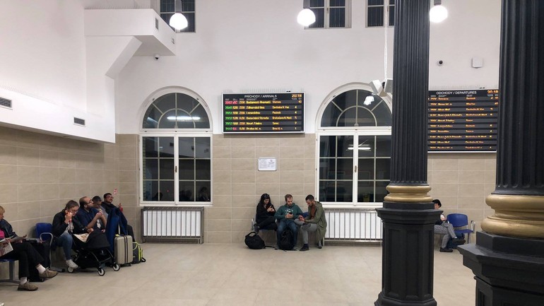 „Plný odhodlania som sa teda vybral na poschodie, kde som opäť narazil na niekoľko skvostov. Po prvé v čakárni je zákaz konzumovať jedlo, nie sú tu koše s triedeným odpadom (nie, naozaj toto nie je prehnaná požiadavka) ani informačné tabule, ale nájdeme tu konečne fungujúce zásuvky. Sú tu asi v počte dve, alebo tri, ale keďže život vraj nie je fér tie zásuvky, sú vo výške asi 1,4 m a samozrejme pri nich nie sú lavičky. Čo mi teda ostáva? Opäť sedieť na zemi a navyše držať si telefón celý čas v ruke. Viem, že vám pravdepodobne napadne, že tie zásuvky nie sú určené na nabíjanie zariadení, dovolím si však zastávať názor, že na mieste ako je Hlavná stanica hlavného mesta by mala takúto možnosť ponúkať. Myslím, že problémy, ktoré som načrtol, si nevyžadujú drahé riešenia, len trochu vôle a lepšieho manažmentu zo strany ZSSK. Pretože, ak budeme nad svojou nespokojnosťou len nečinne mávať rukou, tak sa nikdy nič nezlepší.“