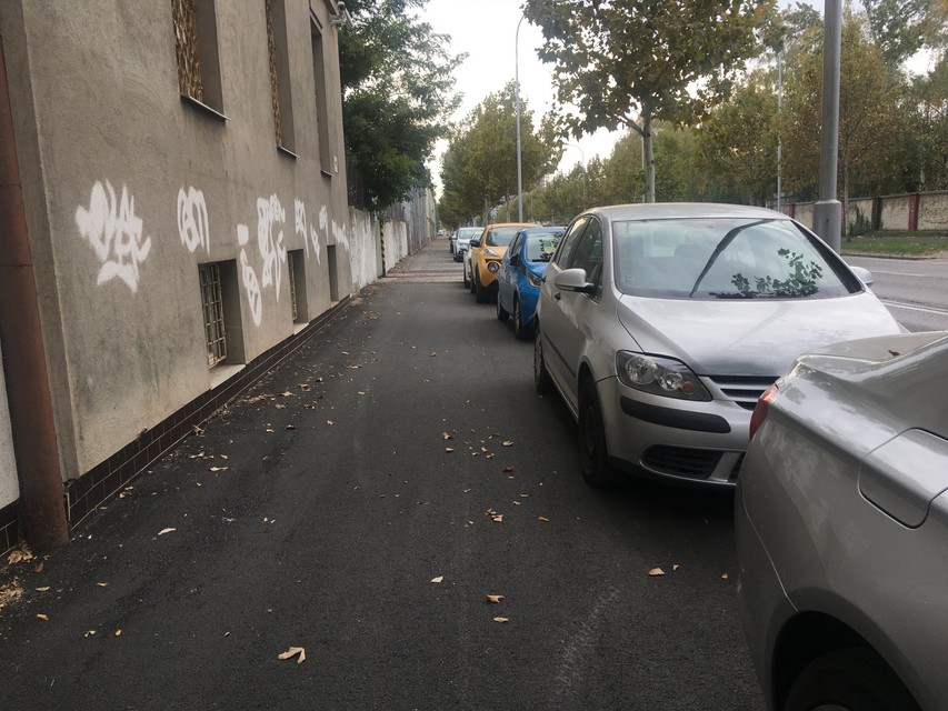 Na chodníku asi v polovice dĺžky v smere od Vajnorskej ulice k Račianskej ulici parkujú ľudia so svojimi autami, ktorí sú zamestnaní v neďalekom biznis centre. Na vjazd a výjazd z chodníka používajú trávnatý pás medzi stromami, čím ničia pás zelene, ktorý oddeľuje chodník od komunikácie. Nedávno bol celý chodník nanovo vyasfaltovaný, podľa informácií, ktoré sme dostali od hovorcu miestneho úradu Nové Mesta, rekonštrukcia ešte nedošla do svojej finálnej fázy. „Stavebné práce stále neboli dokončené, hneď ako sa tak stane, budú v lokalite osadené dopravné značky zakazujúce parkovanie v danej lokalite, informoval nás Marek Tettinger, hovorca Nového Mesta.