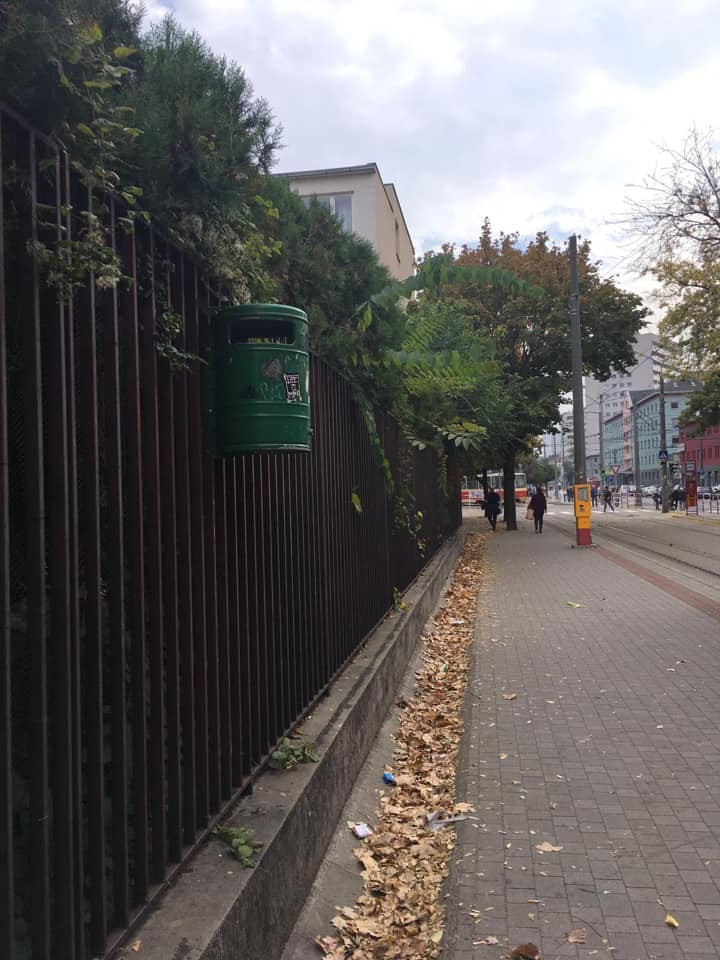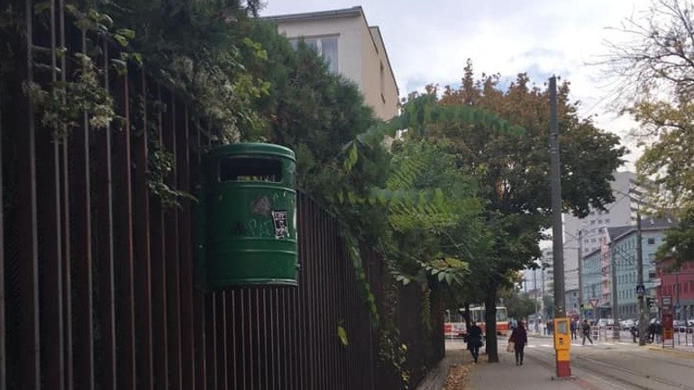 Priamo na zastávke MHD sa našťastie nachádza ešte jedna nádoba na odpad, ale dá sa predpokladať, že kôš "pre basketbalistov" nebude na plote v dvojmetrovej výške umiestnený natrvalo. Zo záberov z roku 2014 je totiž zrejmé, že sa pôvodne nachádzal na tom istom mieste, ale v normálnej výške.