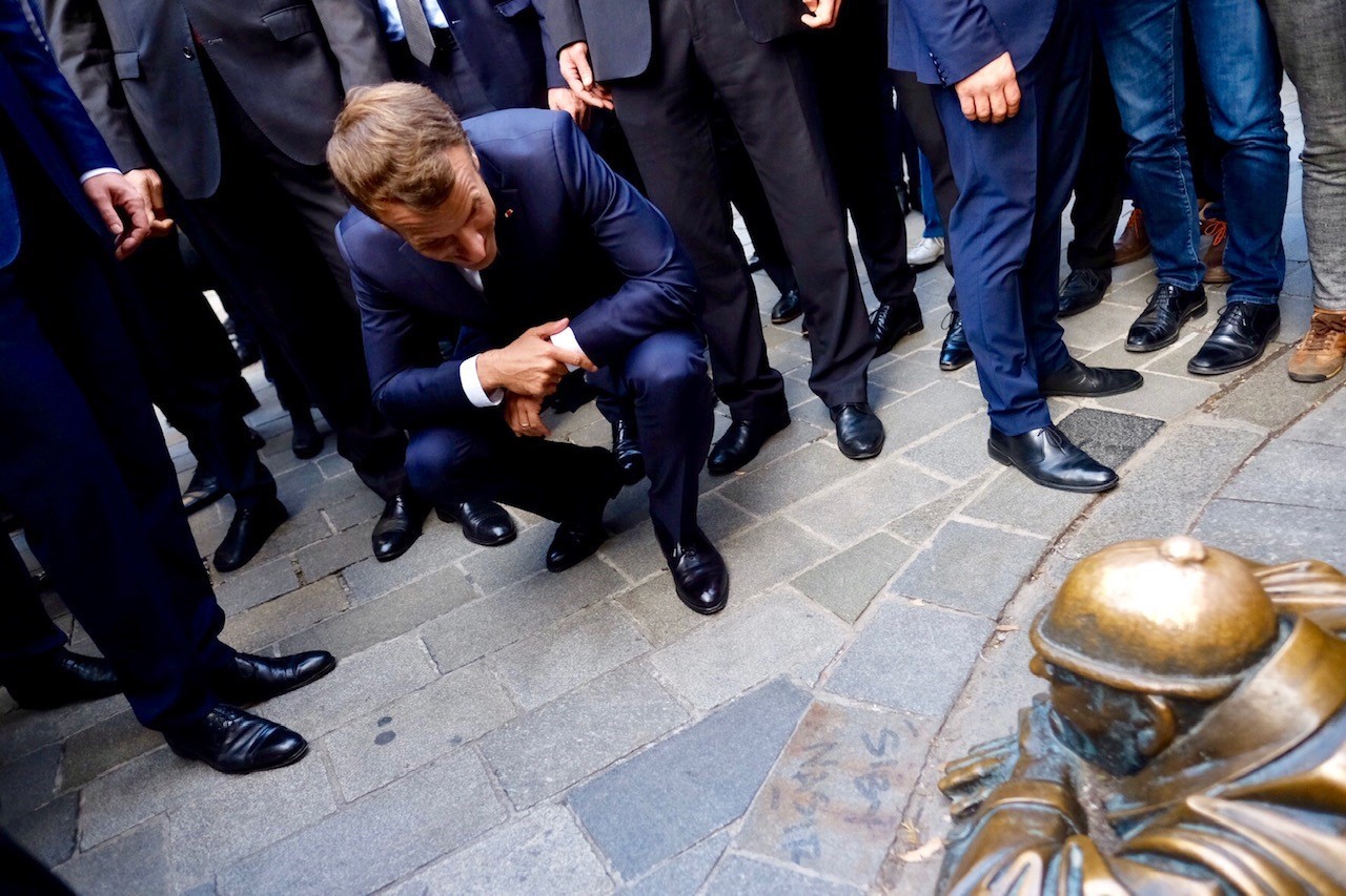 Francúzsky prezident Emmanuel Macron sa prešiel ulicami Starého Mesta