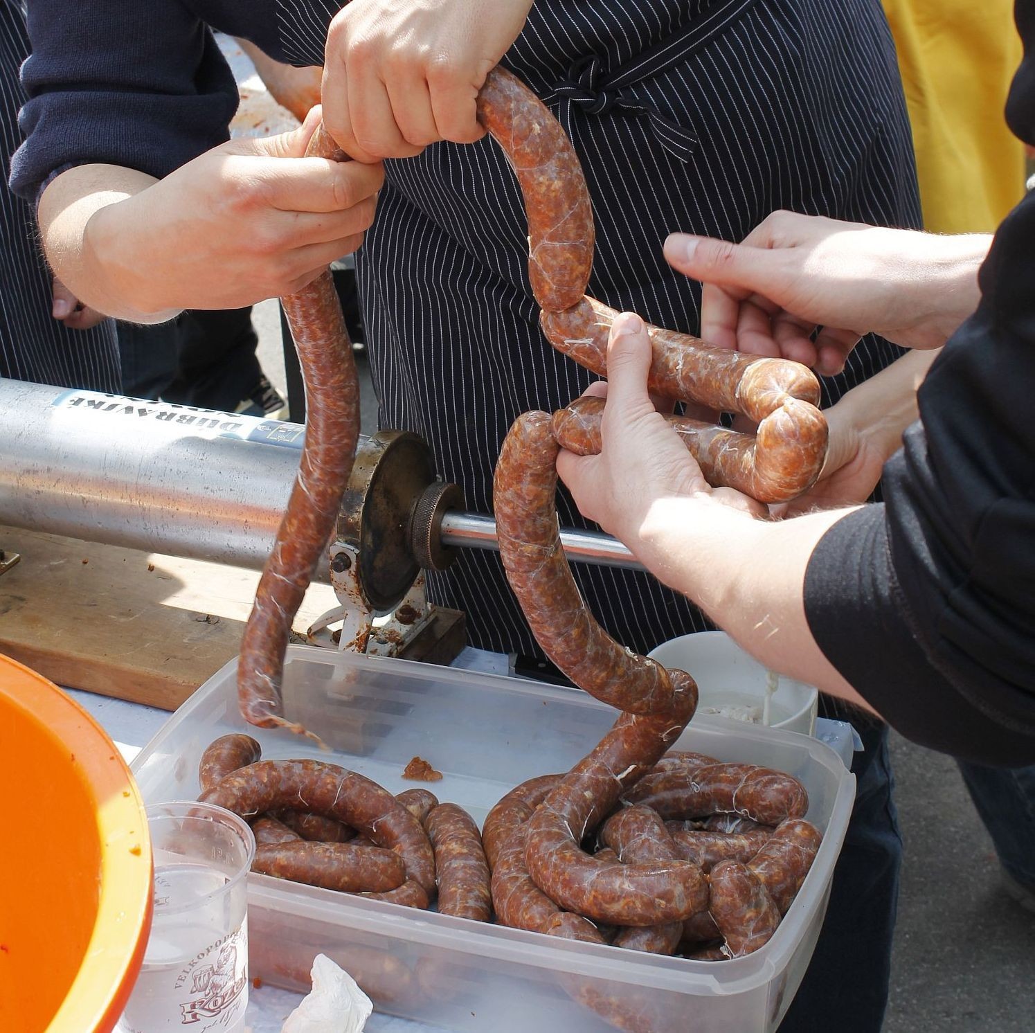 10:00 – Začiatok súťaže, mletie mäsa, miešanie a plnenie klobás