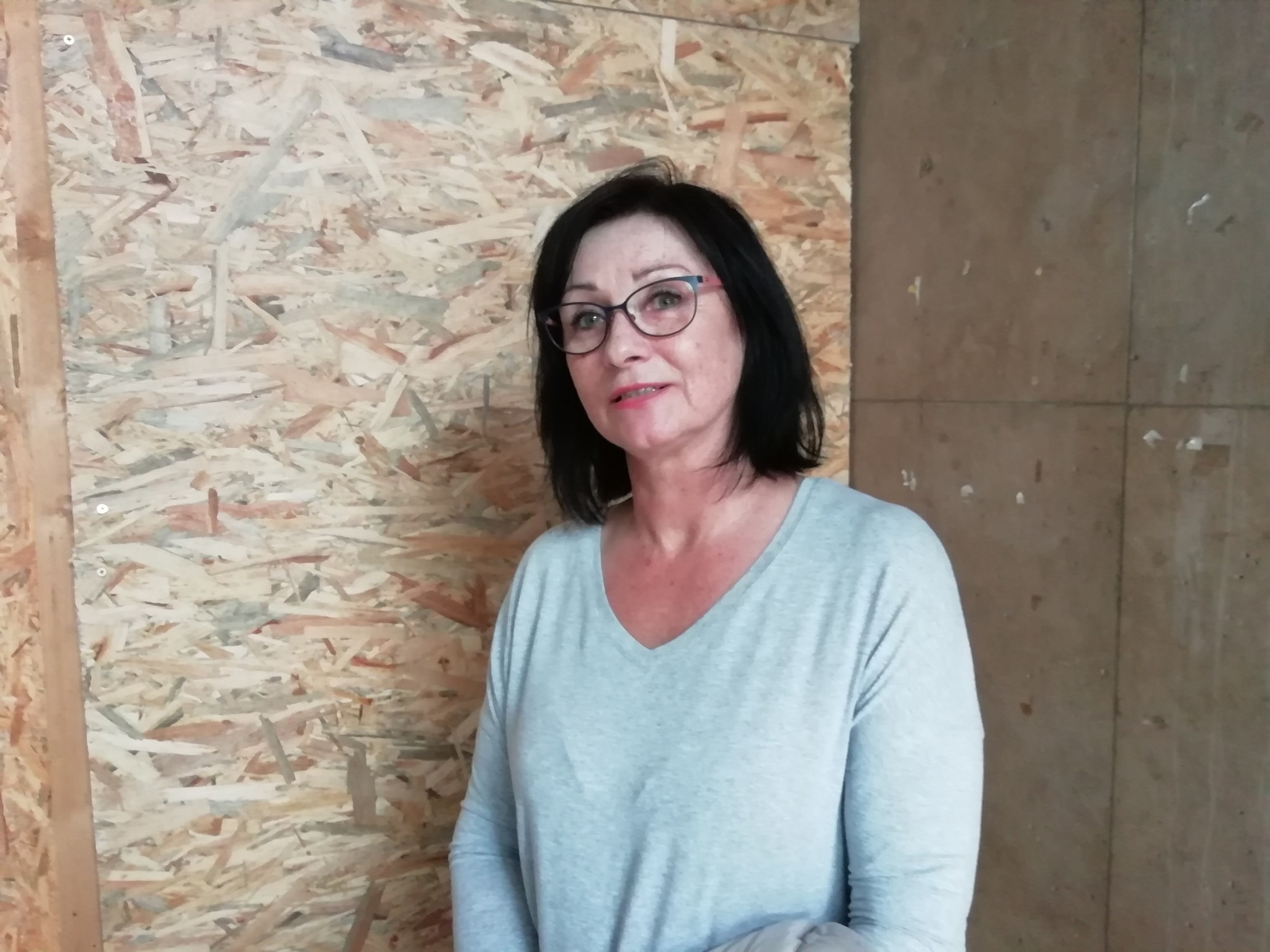 Pani Daniela (drevotrieska za ňou je priamo v priestoroch pošty):