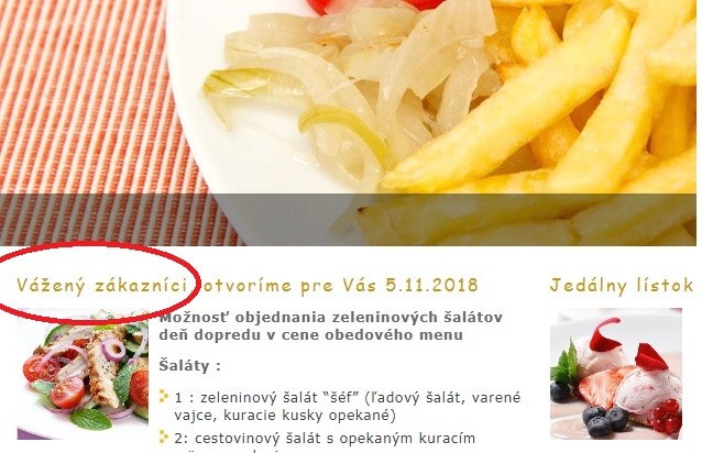Chceli sme získať aj vyjadrenie prevádzkára reštaurácie, ale na jej internetovej stránke sme okrem jeho telefónneho čísla, ktoré nám však nikto nezdvíhal, objavili ďalšiu jazykovú perlu s neprehliadnuteľnou pravopisnou chybou: