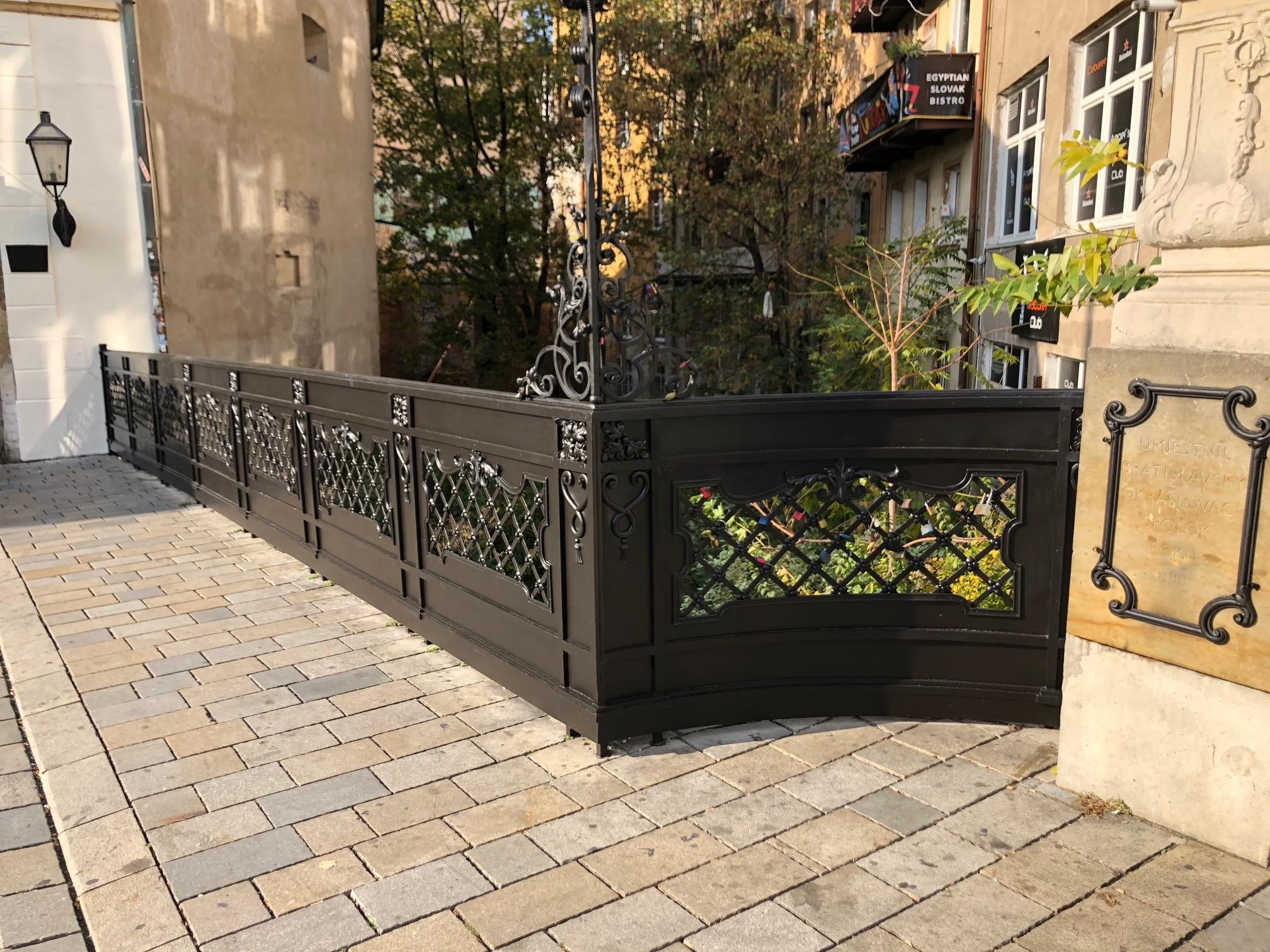 Namaľované bolo aj zábradlie, na ktorom ponechali zámky, ktoré tu dávajú turisti a zaľúbenci a to aj napriek hlasom, ktoré tvrdia, že v miestach, kde sa dotýkajú mrežovej konštrukcie, môže dochádzať k zvýšenej korózii.