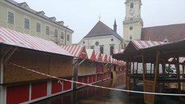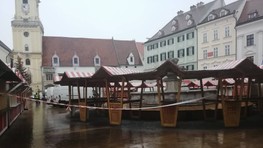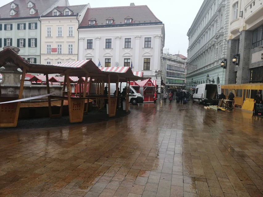Dnes sme sa boli presvedčiť, ako stavba stánkov na námestí napreduje. Aj napriek hustému dažďu sa už v dopoludňajších hodinách riadne pracovalo na dokončovaní stánkov a zdobení stromčeka. Všetko teda nasvedčuje tomu, že trhy budú pripravené načas a návštevníci Starého Mesta sa môžu tešiť na zahájenie tohtoročnej sezóny Vianočných trhov už tento piatok.