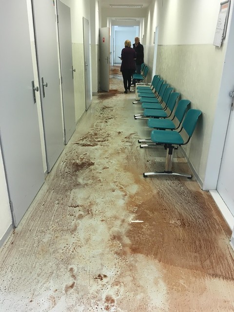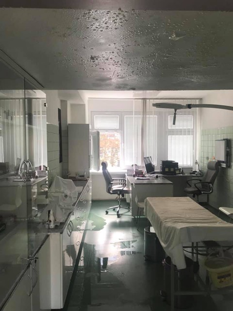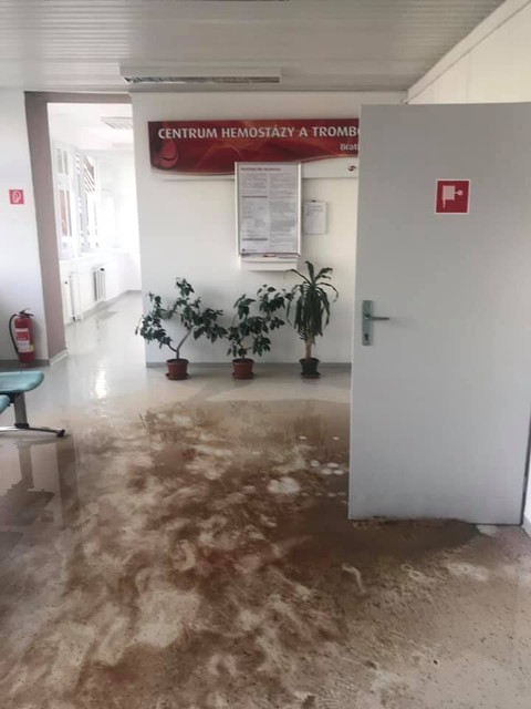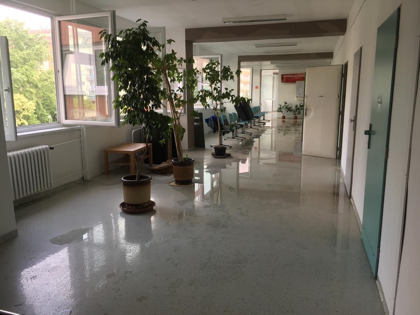 "Vytopilo ambulancie na troch poschodiach a čiastočne aj prízemie. Chirurgické, zubné, obvodné, hematológia aj niektoré detské ambulancie. Skrátka celé jedno krídlo budovy," povedal nám jeden z nájomníkov, ktorý bol priamo v budove.