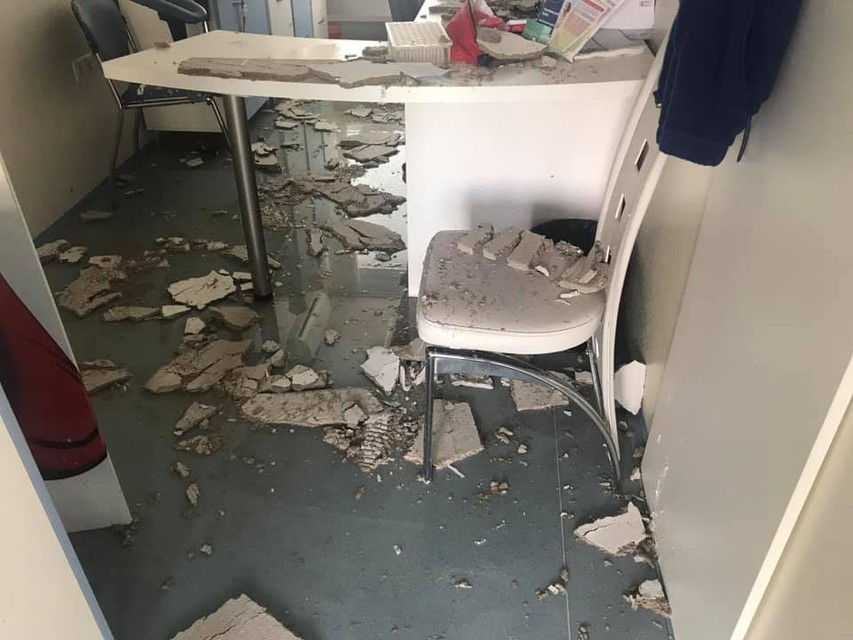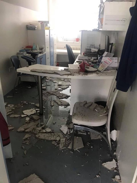 Poliklinku pochopiteľne zatvorili, takže ak ste tam mali v pláne ísť, ani nechoďte. To však nie je všetko. "Niekde váhu vody nevydržali stropné podhľady. Teraz sa tam vo veľkom upratuje a rátajú škody," dodal nájomník.