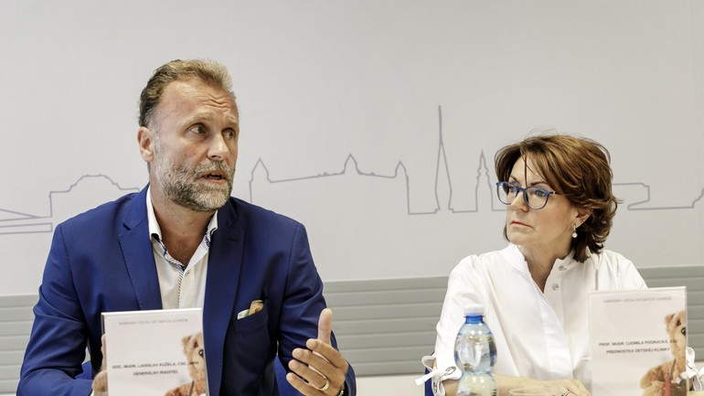 Kužela (na foto s prednostkou Detskej kliniky LF UK a NÚDCH Ľudmilou Podrackou) priblížil, že v NÚDCH plánujú dotváranie centier. "Ak sa to podarí, tak tento rok ako jedni z prvých vrátime naspäť dialýzu z privátnych rúk do nášho ústavu. Budeme poskytovať dialýzu tak pre akútnych, ako aj chronických pacientov. Počas budúceho roka máme v pláne vytvoriť centrum jednodňovej chirurgickej zdravotnej starostlivosti pre pacientov zo Slovenska," priblížil.