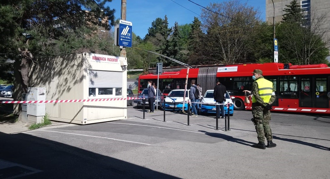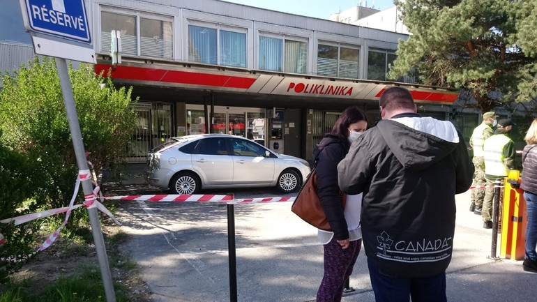 Strážia ju vojaci, pred vchodom je natiahnutá páska. Tak momentálne vyzerá vchod do kedysi rušnej budovy polikliniky na bratislavských Kramároch.