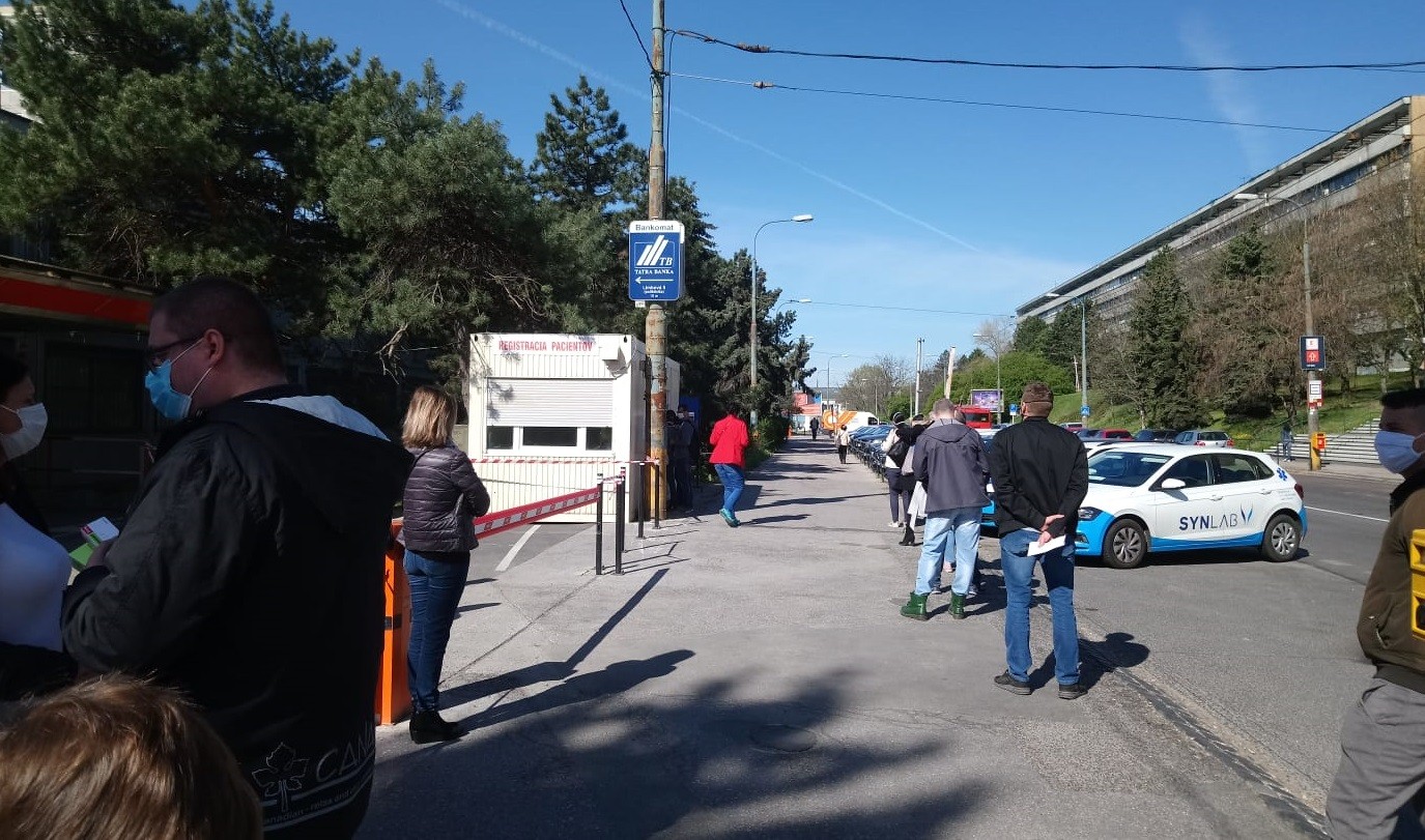 Čakajúci ľudia sú disciplinovaní, dvojmetrové rozostupy dodržané. Hoci ide o polikliniku určenú najmä dospelým, chtiac-nechtiac počúvame aj otázky dieťaťa za nami. "Mami, prečo tu stojíme a prečo sme tak daleko od tety?"