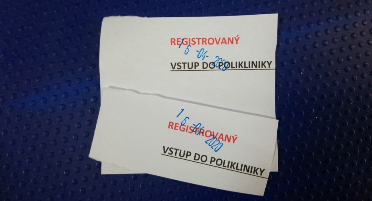 Ústrižky, ktoré dostanete pred vstupom do polikliniky.