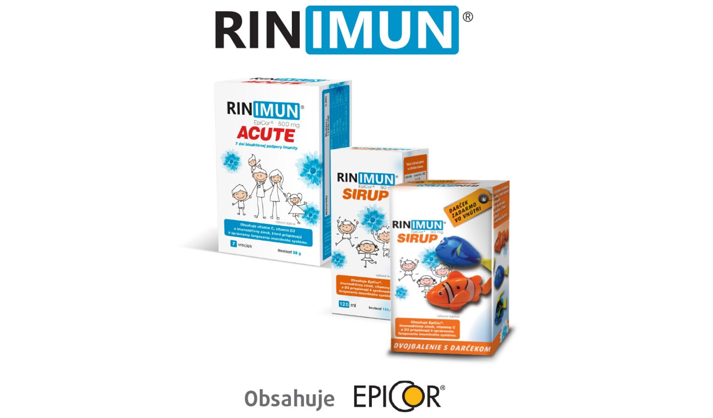 Nielen v obdobiach zvýšenej záťaže organizmu, ale počas celého roka je odporúčaný na správne fungovanie imunitného systému výživový doplnok RINIMUN s unikátnou zložkou EpiCor® a imunoaktívnym zinkom. Toto zloženie zaručuje postupné posilňovanie imunity, čoho dôsledkom je menšia náchylnosť na sezónne ochorenia a vírusové infekcie a ich lepšie zvládanie. Patentovaná zložka EpiCor® je potravinársky fermentát vyrobený z prírodných pivných kvasiniek zvaných Saccharomyces cerevisiae. Vyrába sa poprednou svetovou metódou fermentácie potravín. Táto zmes makronutrientov obsahuje množstvo potrebných živín proteínov, minerálov, vlákninu, betaglukány a mastné kyseliny. Ďalej sú v zmesi zastúpené aminokyseliny, antioxidanty, a mikronutrienty v podobe vitamínov skupiny B. EpiCor® bol klinicky testovaný, jeho mechanizmus účinku, účinnosť a bezpečnosť boli potvrdené na základe klinických štúdií publikovaných v odborných časopisoch. Ďalšou zložkou výživového doplnku RINIMUN je imunoaktívny zinok vo forme pikolínanu. Táto organická formulácia zinku je omnoho ľahšie vstrebateľná a nie je dráždivá pre žalúdok. Zinok má veľký význam pri metabolizme cukrov, bielkovín, transporte oxidu uhličitého, je súčasťou antioxidačného enzýmu a má veľký vplyv na imunitu. To všetko robí z produktu RINIMUN ideálnu voľbu na podporu imunity v období, kedy sa končí izolácia a život sa pomaly vracia do starých koľají.
