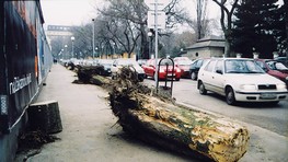Mestská časť Staré Mesto nechala vyrúbať 22 stromov na Spojnej ulici. O výrube rozhodol starosta Peter Čiernik na základe odborného fytopatologického posudku, podľa ktorého boli stromy napadnuté zhubným, vysoko infekčným ochorením tzv. rýchlou grafiózou.