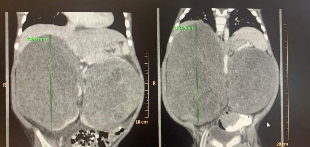 Po konzultáciách so zahraničnými špecialistami v Holandsku a USA sa ukázalo, že je nutné zrealizovať vysoko náročné a rizikové operácie. "Na CT vyšetrení sme videli obojstranný veľký nádor na obličke, ktorý tlačil na bránicu a boli utláčané pľúca. Dieťatko už začínalo mať problémy s dýchaním. Rozhodli sme sa pre urgentnú operáciu," ozrejmil riaditeľ NÚDCH a operujúci lekár Peter Bartoň.