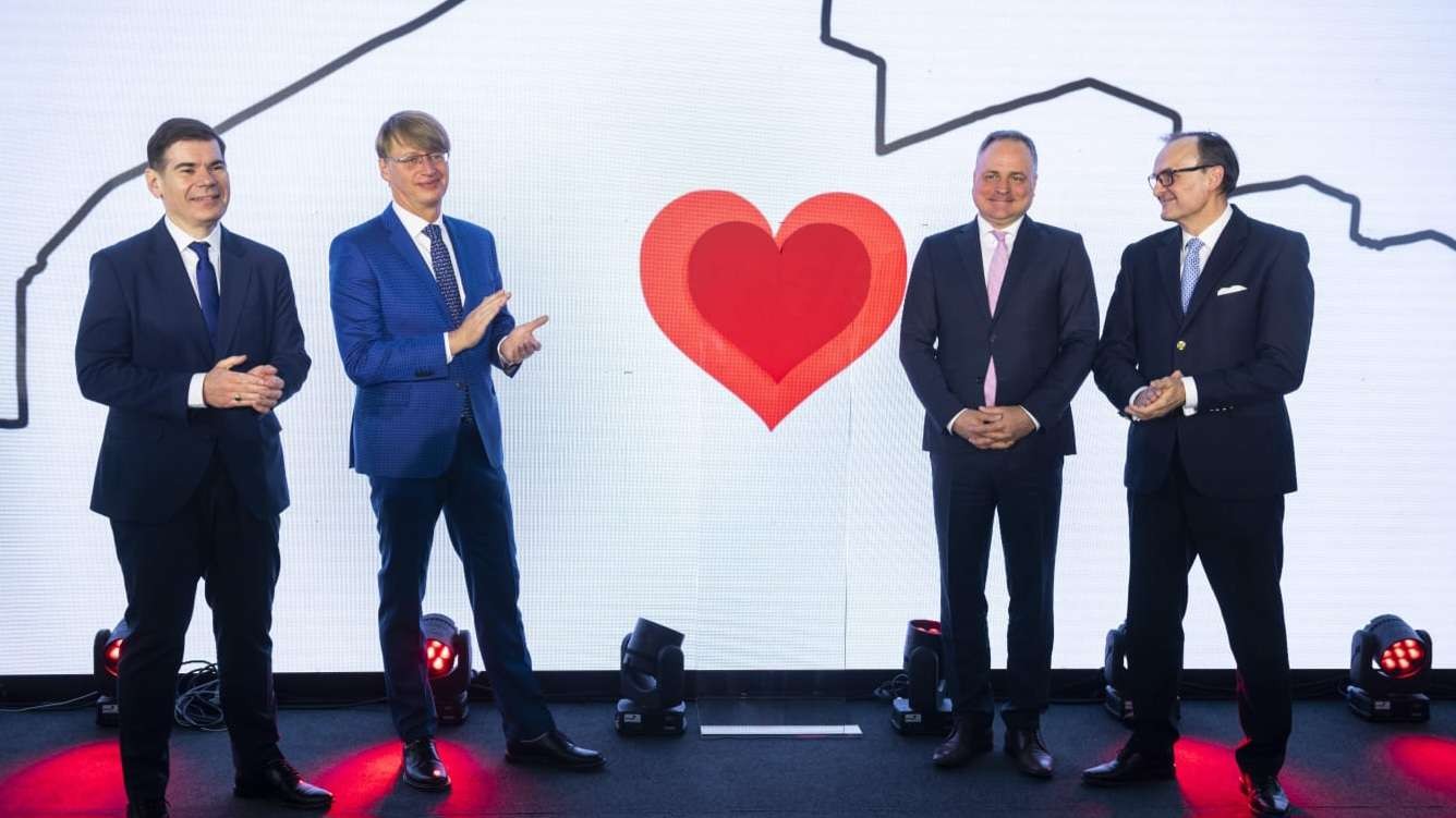 Sprava generálny riaditeľ nemocnice Ľuboš Lopatka, predseda (BSK) Juraj Droba, partner investičnej skupiny Penta zodpovedný za zdravotníctvo Václav Jirků a generálny riaditeľ Penta Hospitals Peter Lednický počas otvorenia novej Nemocnice Bory.