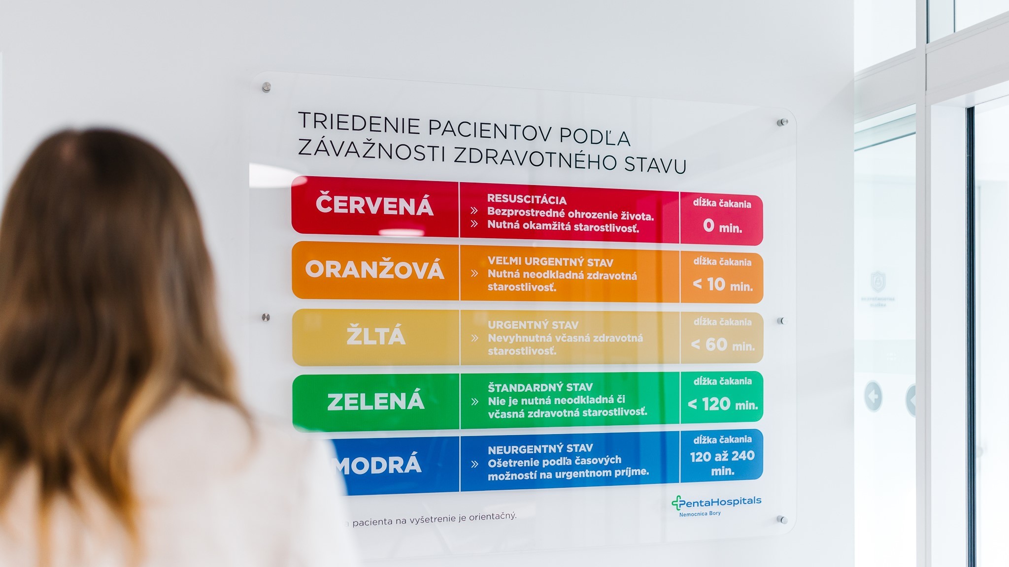 Súčasťou urgentného príjmu bude aj čakáreň s vlastným miestom pre sestru. Poradie ošetrenia pacientov bude pritom založené na modernom triediacom systéme, tzv. triáži. Triážna sestra bude pacientov radiť do piatich skupín podľa naliehavosti ich zdravotného stavu a najvážnejšie prípady budú zdravotníci riešiť okamžite. Vďaka tomuto opatreniu a spôsobu kategorizácie pacientov by sa mali výrazne zvýšiť šance pacientov so závažným úrazom a ochorením na prežitie a na celkové uzdravenie.