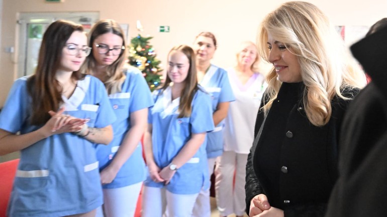 Personál UNB Ružinov navštívila na Štedrý deň aj prezidentka Zuzana Čaputová (na foto). Okrem personálu UNB sa prezidentka stretla i so záchranármi či pracovníkmi Dopravného podniku Bratislava.