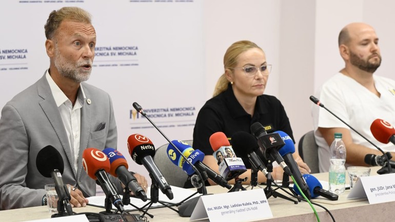 Riaditeľ Nemocnice sv. Michala Ladislav Kužela, prezidentka Policajného zboru Jana Maškarová a zástupca prednostu internej kliniky SZU a UN NsM Ivan SekoV oplachovej nádobe, ktorá sa používa pri kolonoskopických vyšetreniach, bola zmes vody a formaldehydu. Dvaja pacienti Univerzitnej nemocnice - Nemocnice svätého Michala (UN-NsM) v Bratislave zostávajú hospitalizovaní.