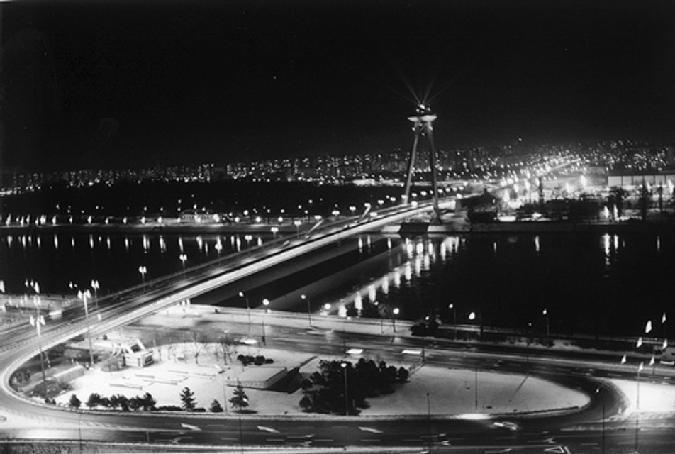 Nové osvetlenie kaviarne Bystrica na Novom moste, pripomínajúce UFO nad Bratislavou, je od nového roku ďalšou atrakciou mesta.