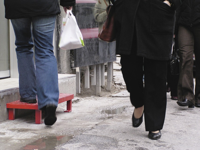 Až do dnešných dní si však stavebné a iné dodávateľské firmy v ktorýkoľvek denný čas uzurpujú chodník v najfrekventovanejšej časti mesta a nútia chodcov obchádzať stavenisko po frekventovanej vozovke. A ak náhodou plastová páska neohradzuje chodník, idú si chodci vylámať nohy na krivom a zničenom chodníku.
